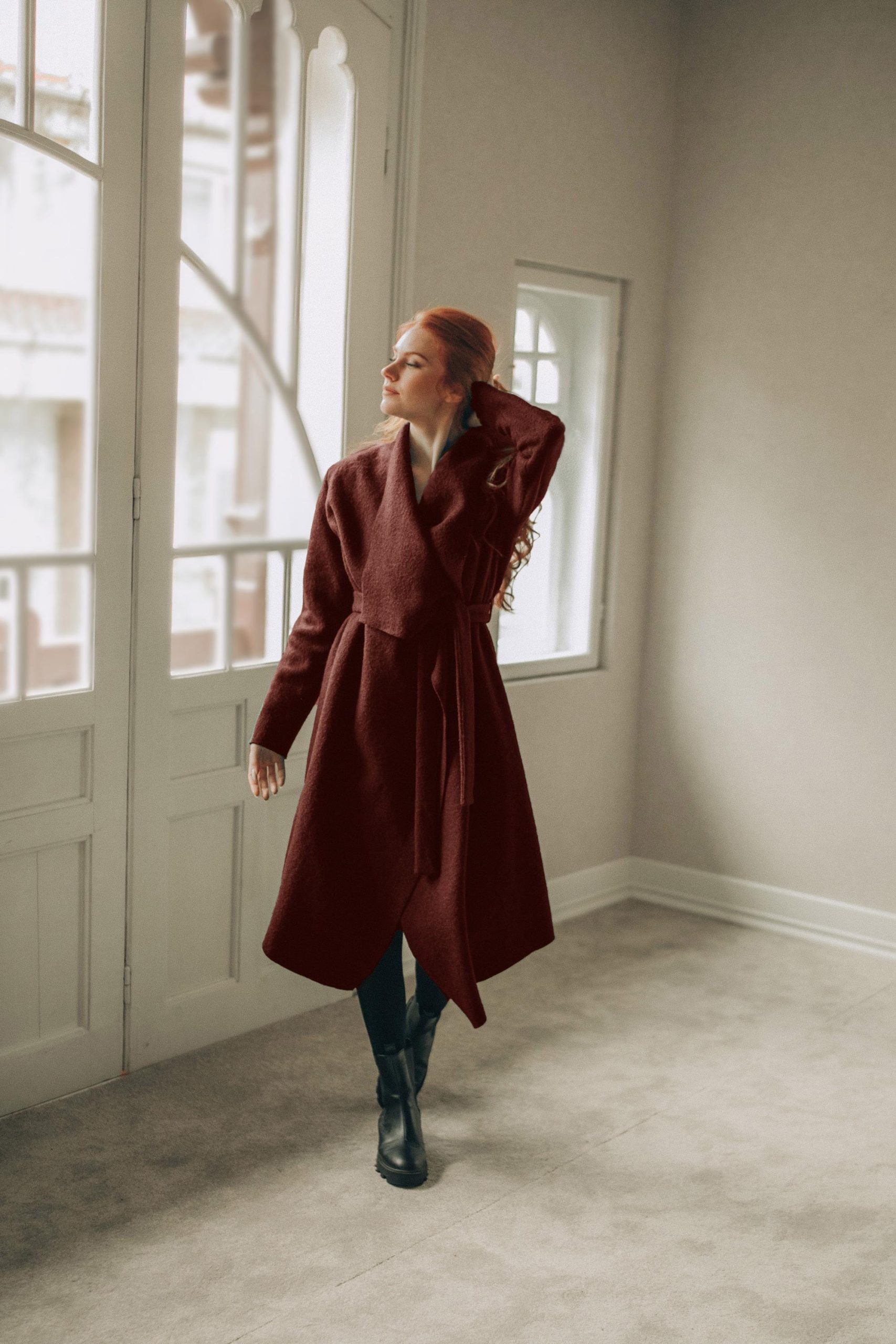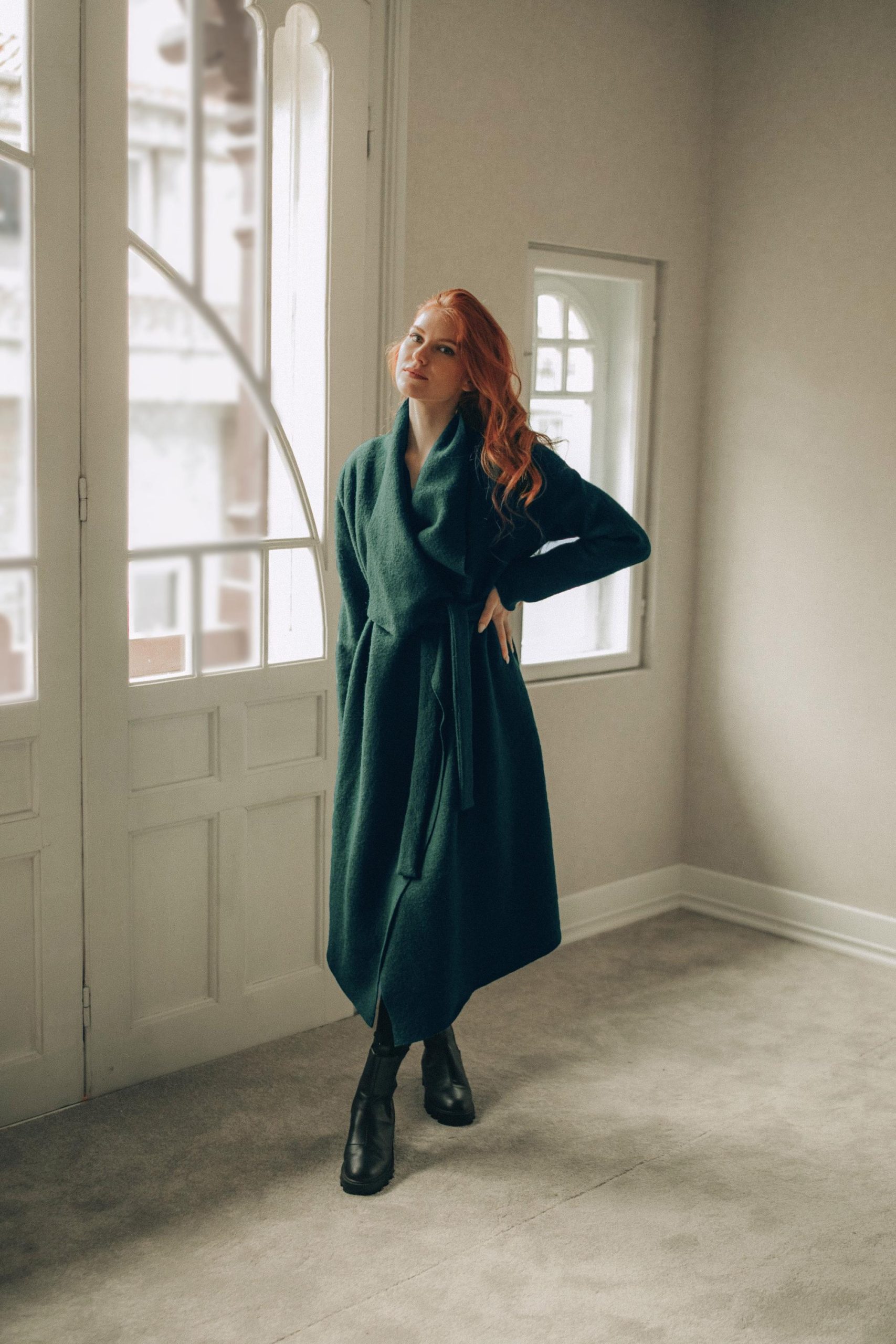 Embrace the cozy charm of fall and winter with this elegant winter cardigan coat, thoughtfully designed for warmth and style. Crafted with a soft wool blend, its flowing waterfall front and belted wrap style create a flattering silhouette that suits every body type. Whether layered as a cardigan coat or styled as a long knit cardigan, this piece effortlessly enhances your seasonal wardrobe.