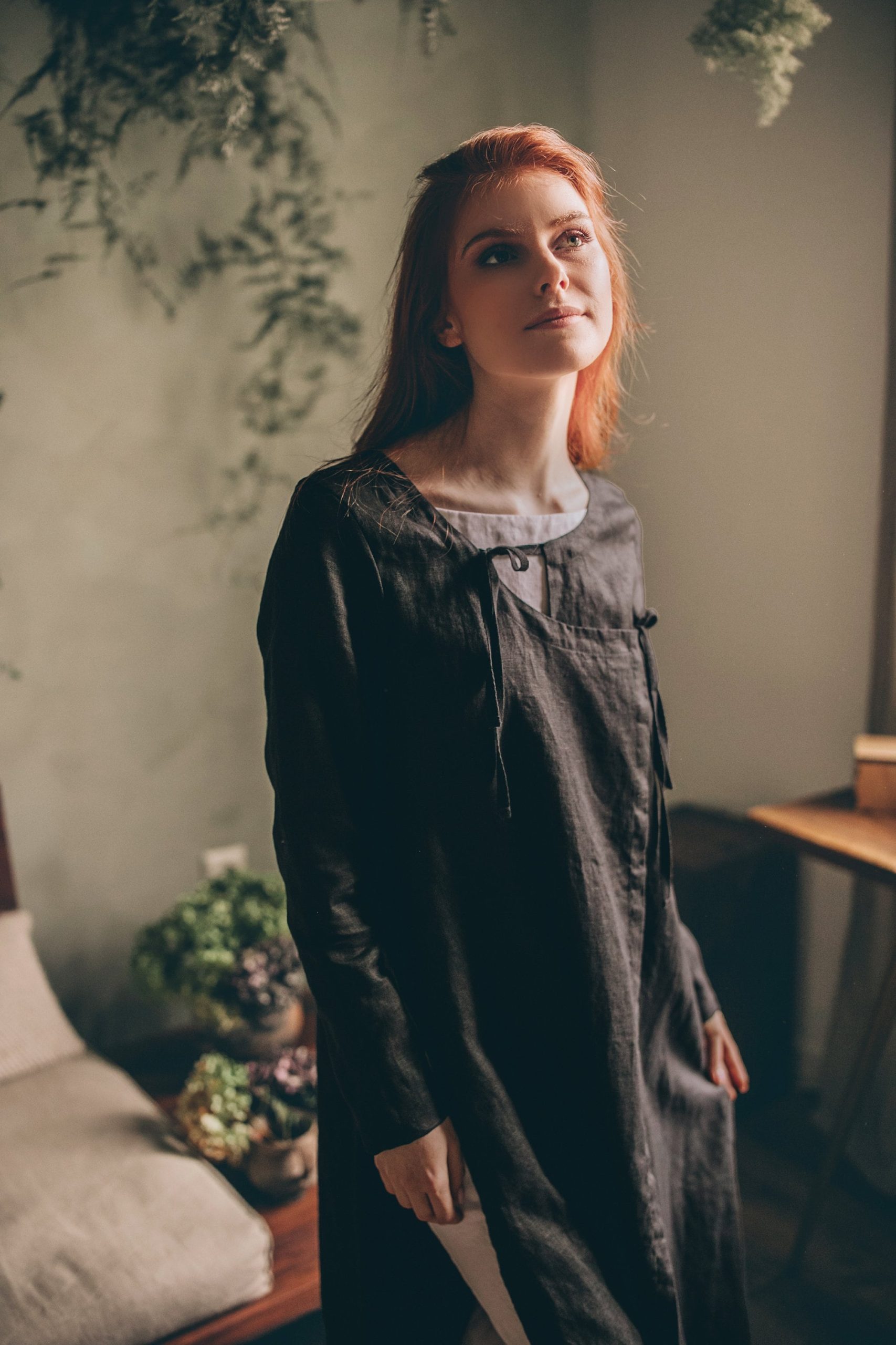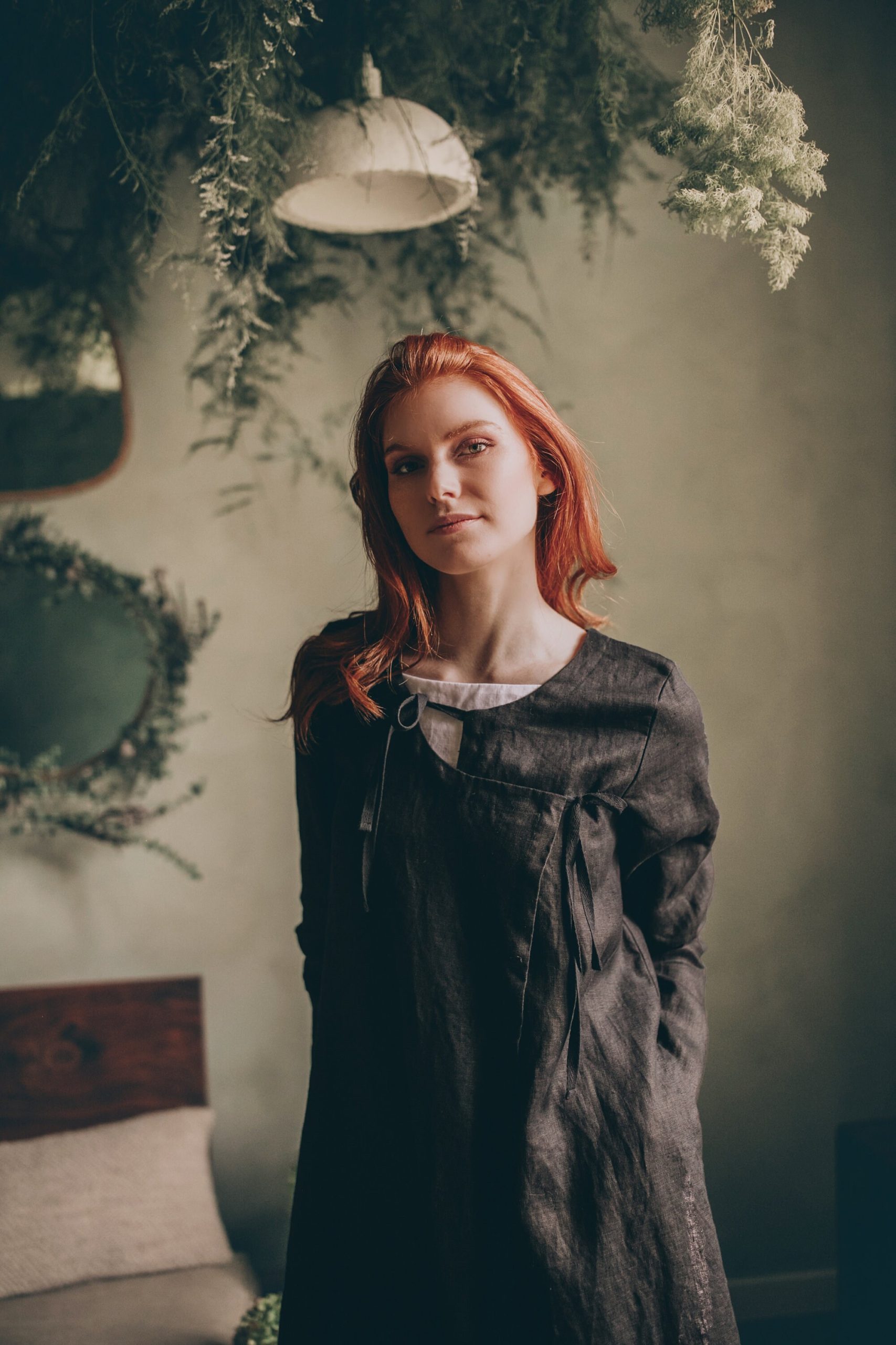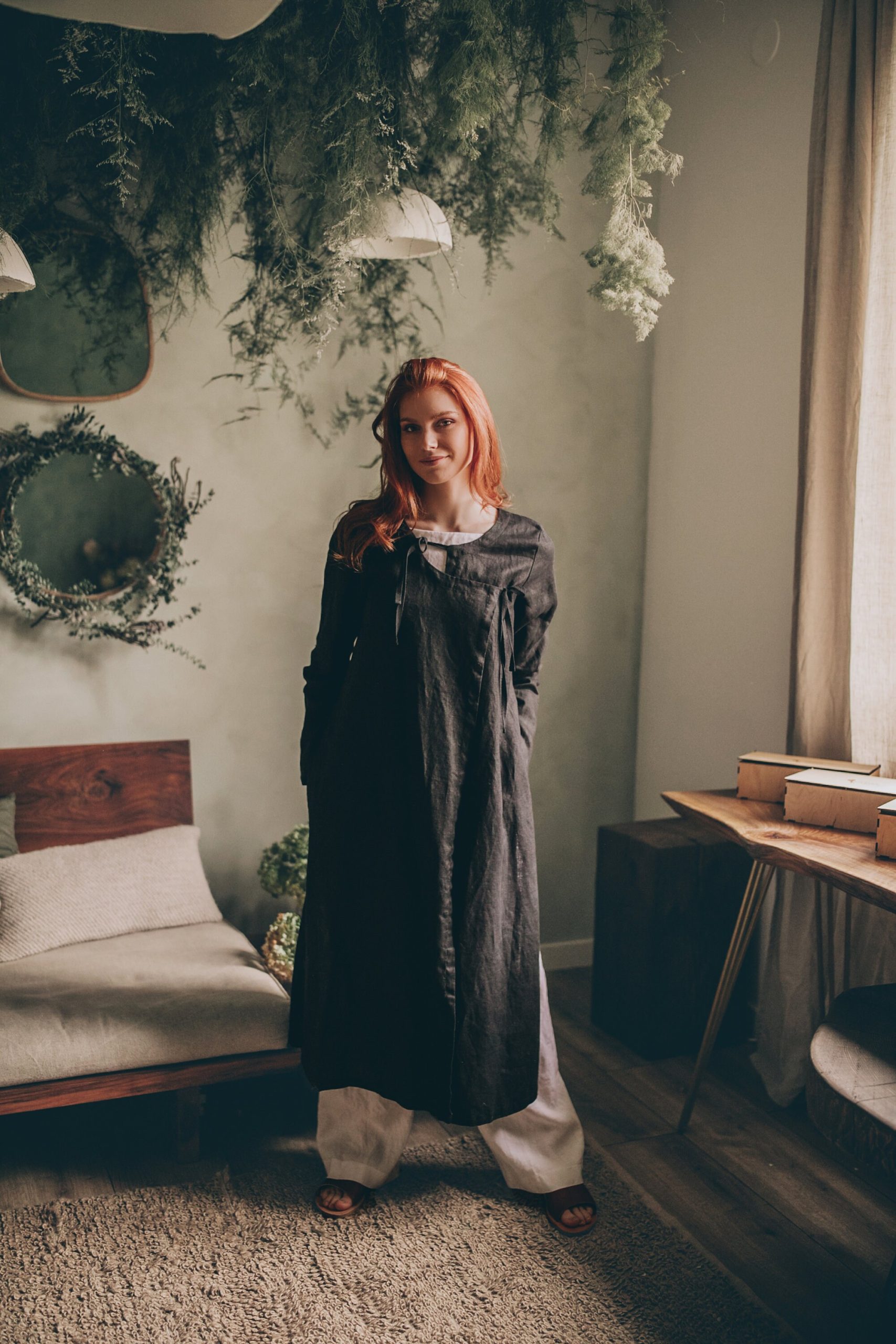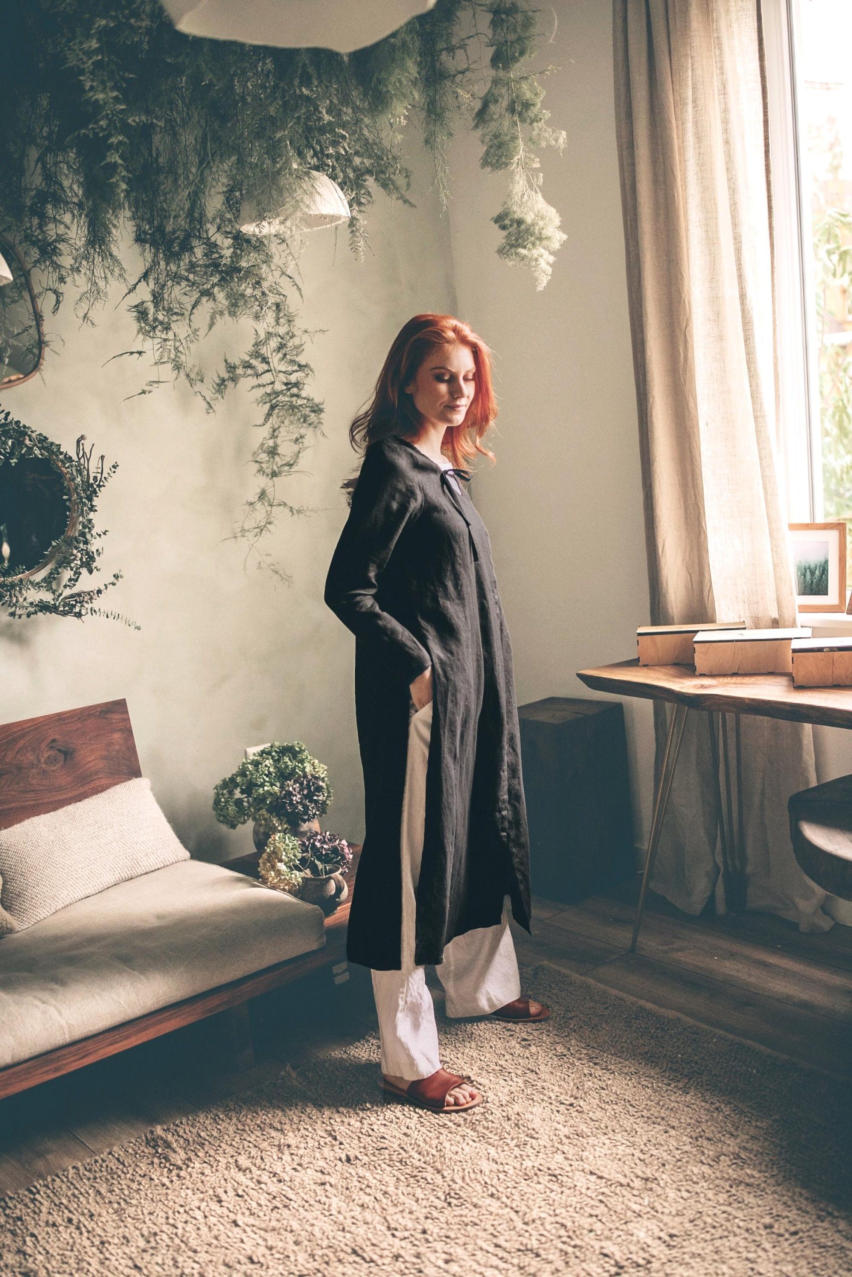 Treat yourself with this so special heavyweight linen cardigan. One of the masterpieces at our collection – long cardigan with slits on the side. A stylish piece that will make you visible. This cardigan is the perfect balance between comfort and elegant but lively look. The delicate ties at the front allow the piece to look very good both closed and relaxing unbuttoned. Made from 100% natural washed and soft heavyweight linen that has a thick texture and is perfect for the chilly weather.