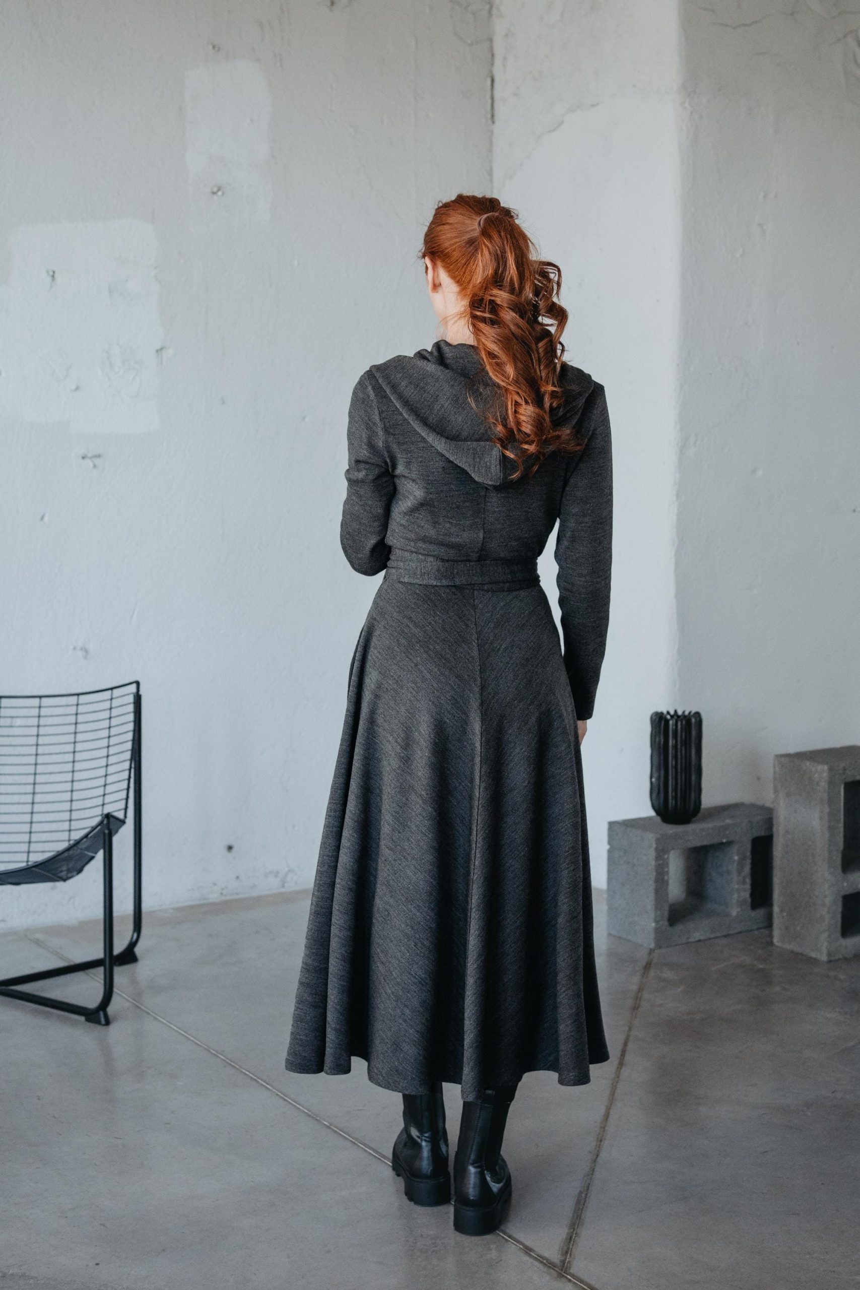Stay cozy and chic with our long knitted cardigan, designed to offer both warmth and elegance. Made from a high-quality knitted fabric, this cardigan features a flattering flared design that adds a graceful flow to your silhouette. The attached hood provides extra warmth and a casual touch, while the matching belt allows you to emphasis the waist for a more defined shape.