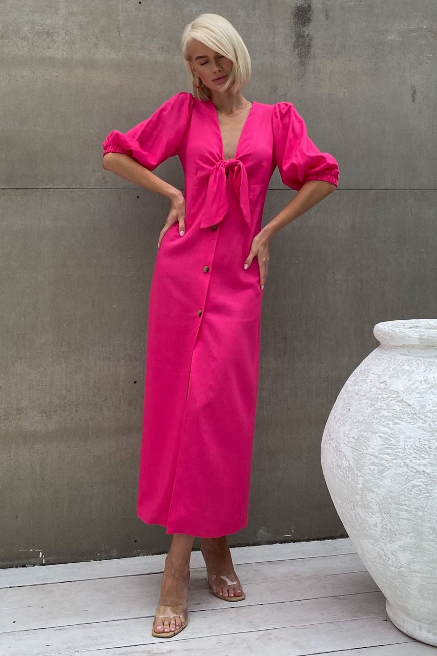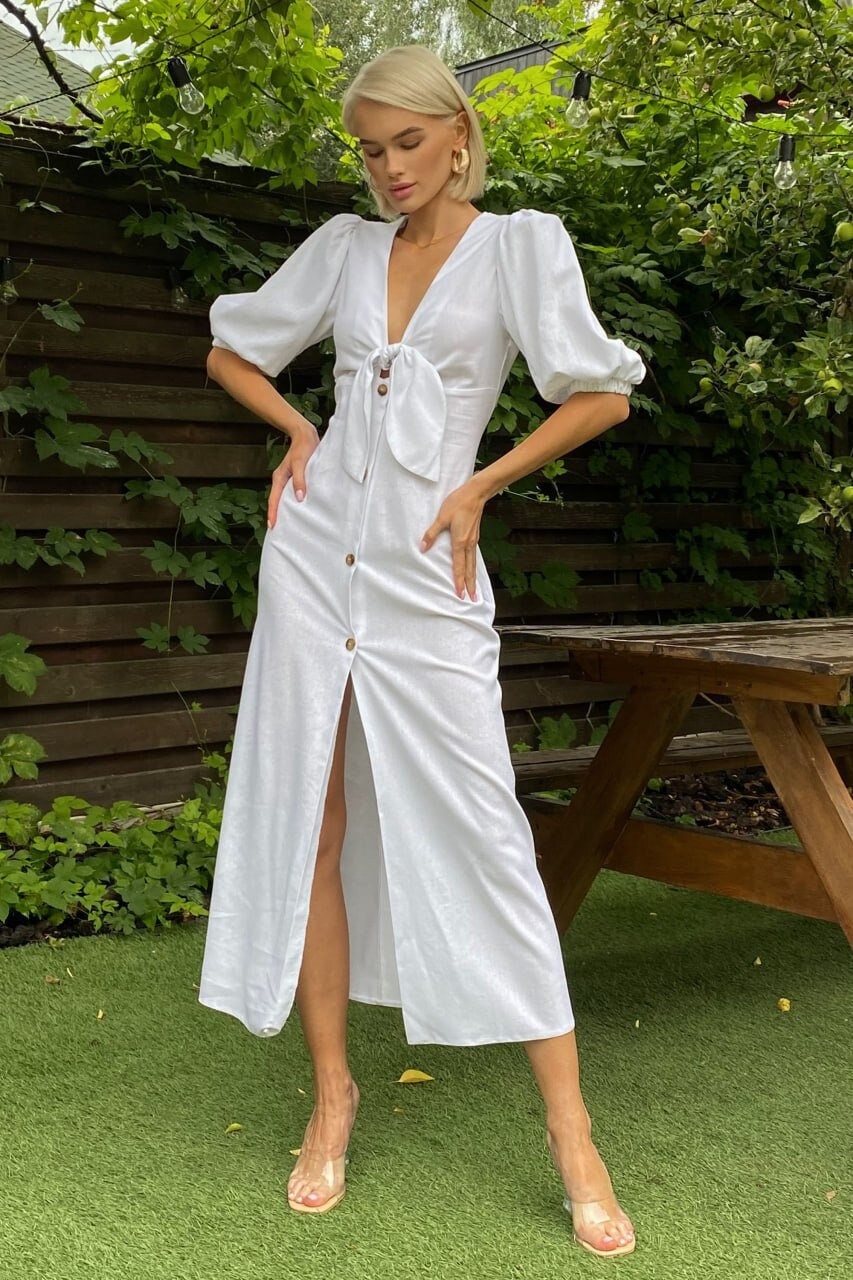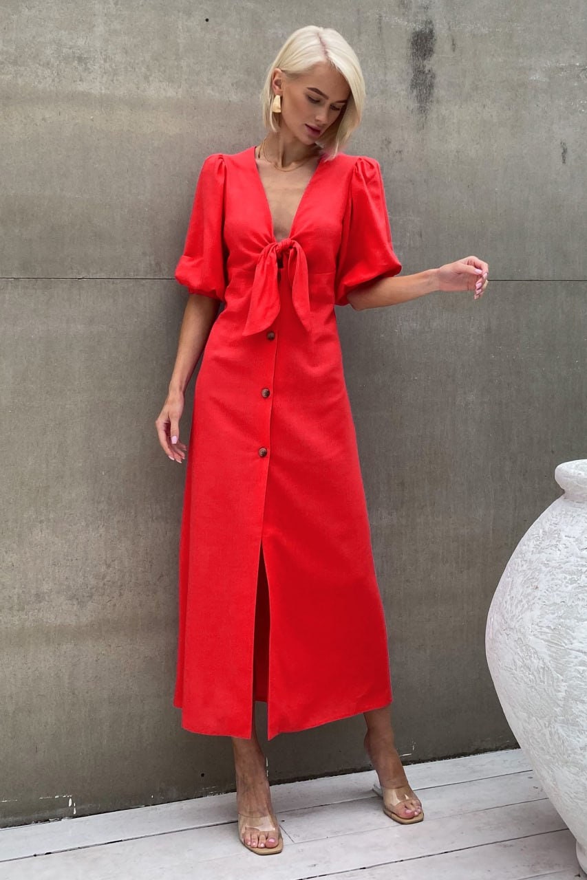 Linen Dress Elegant Deep V Neck Dresses Midi