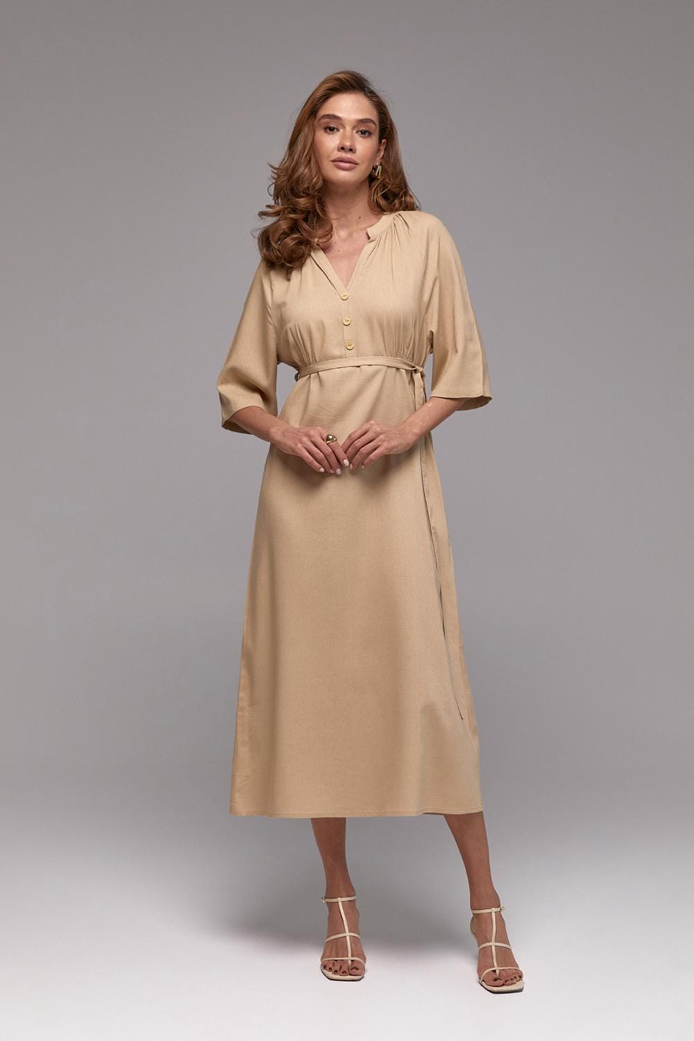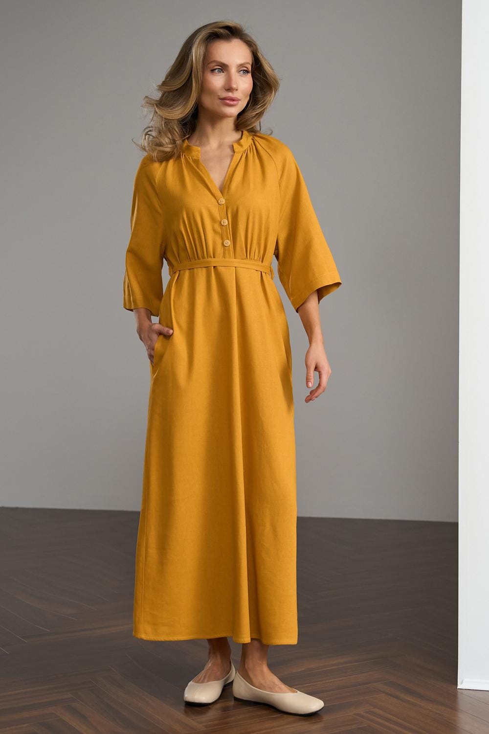 Linen Midi Dress Eco Summer Raglan Sleeve Draped