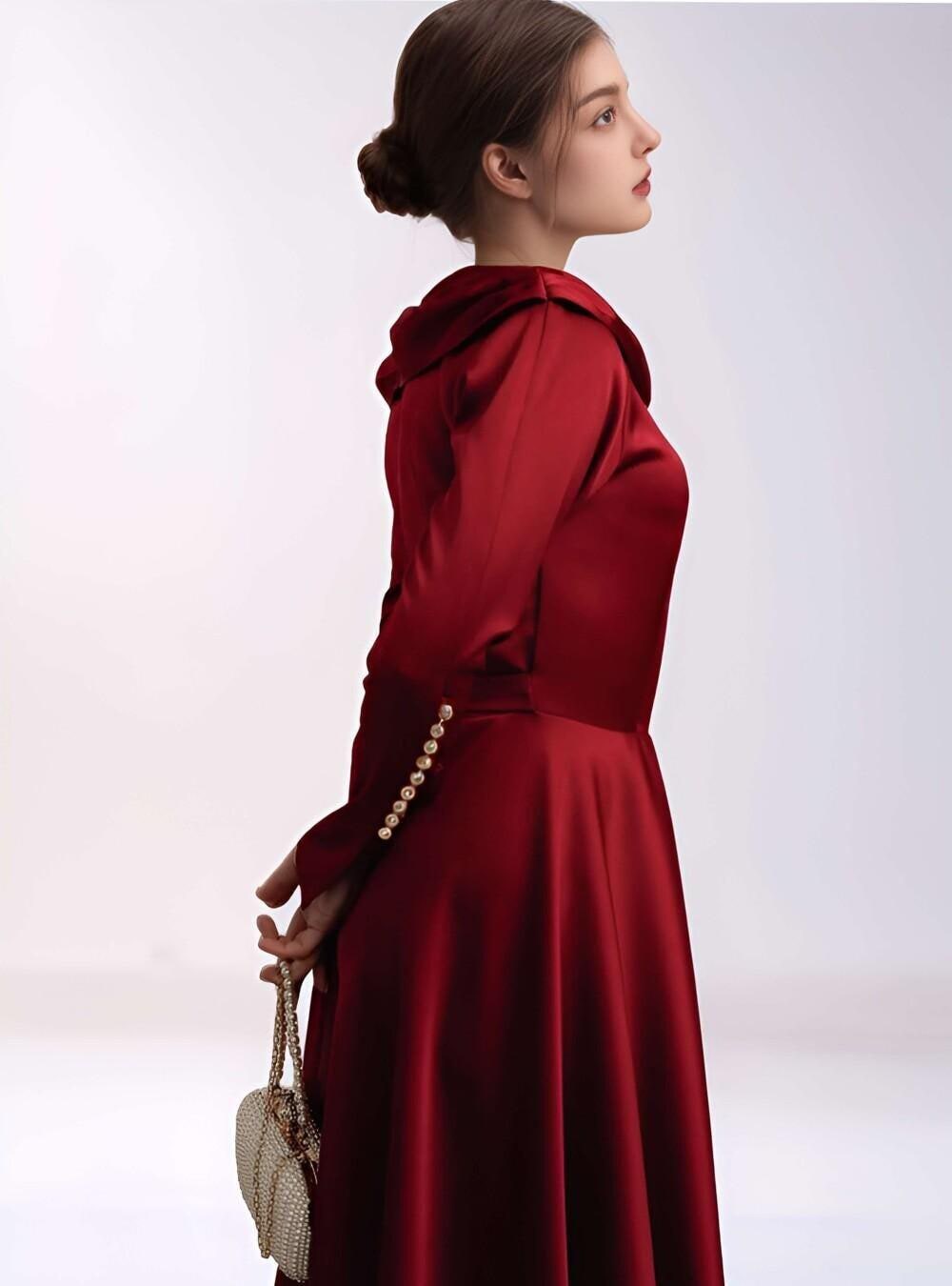 Our silk dress drapes in a flattering A-line cut, brushing the waist and flaring softly. Choose your favorite neckline (Round, V, Square, Boat) and sleeves (from sleeveless to long straight). Satin-lined pockets are discreetly hidden at the hips. Length falls mid-calf or ankle.