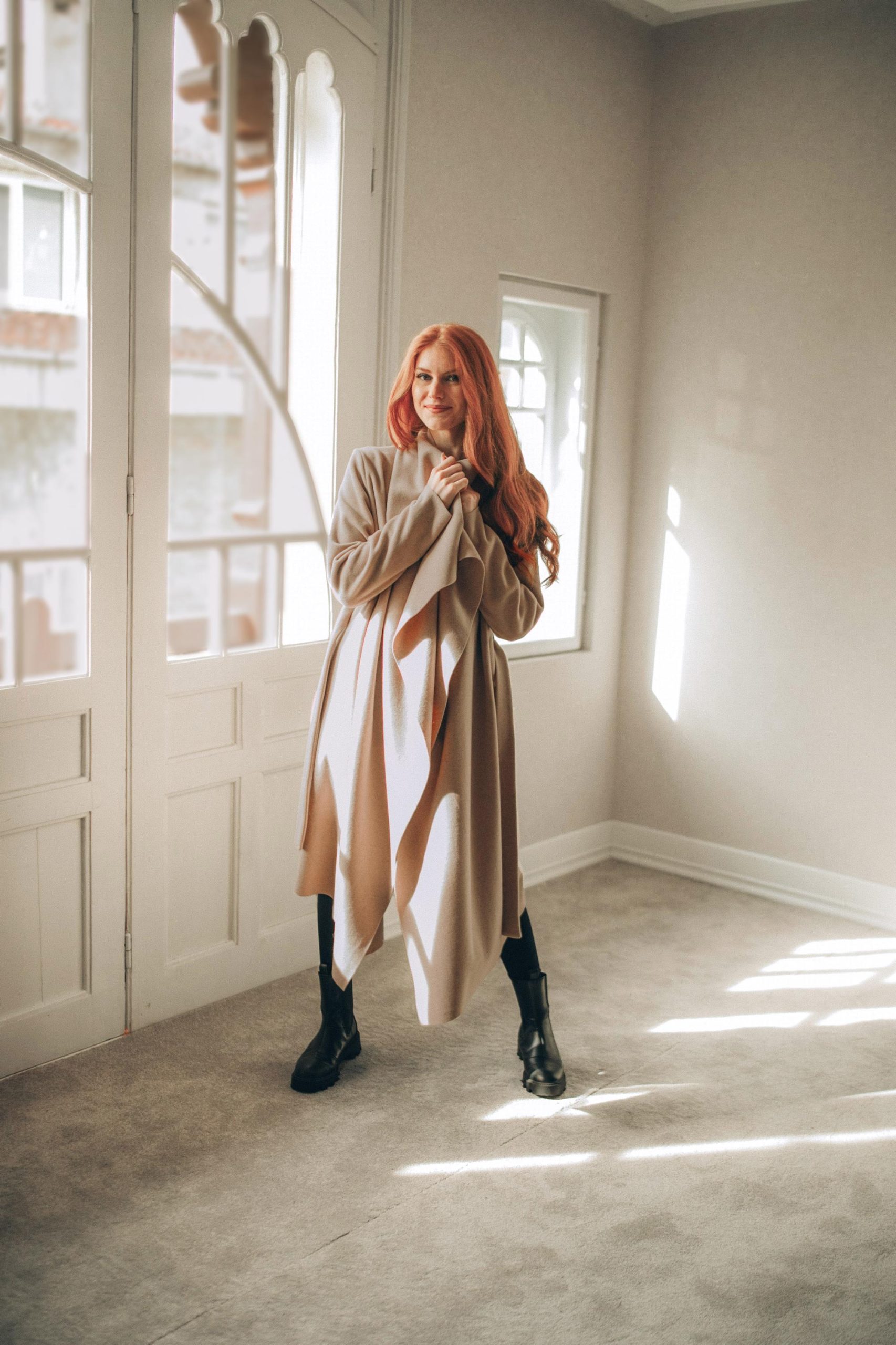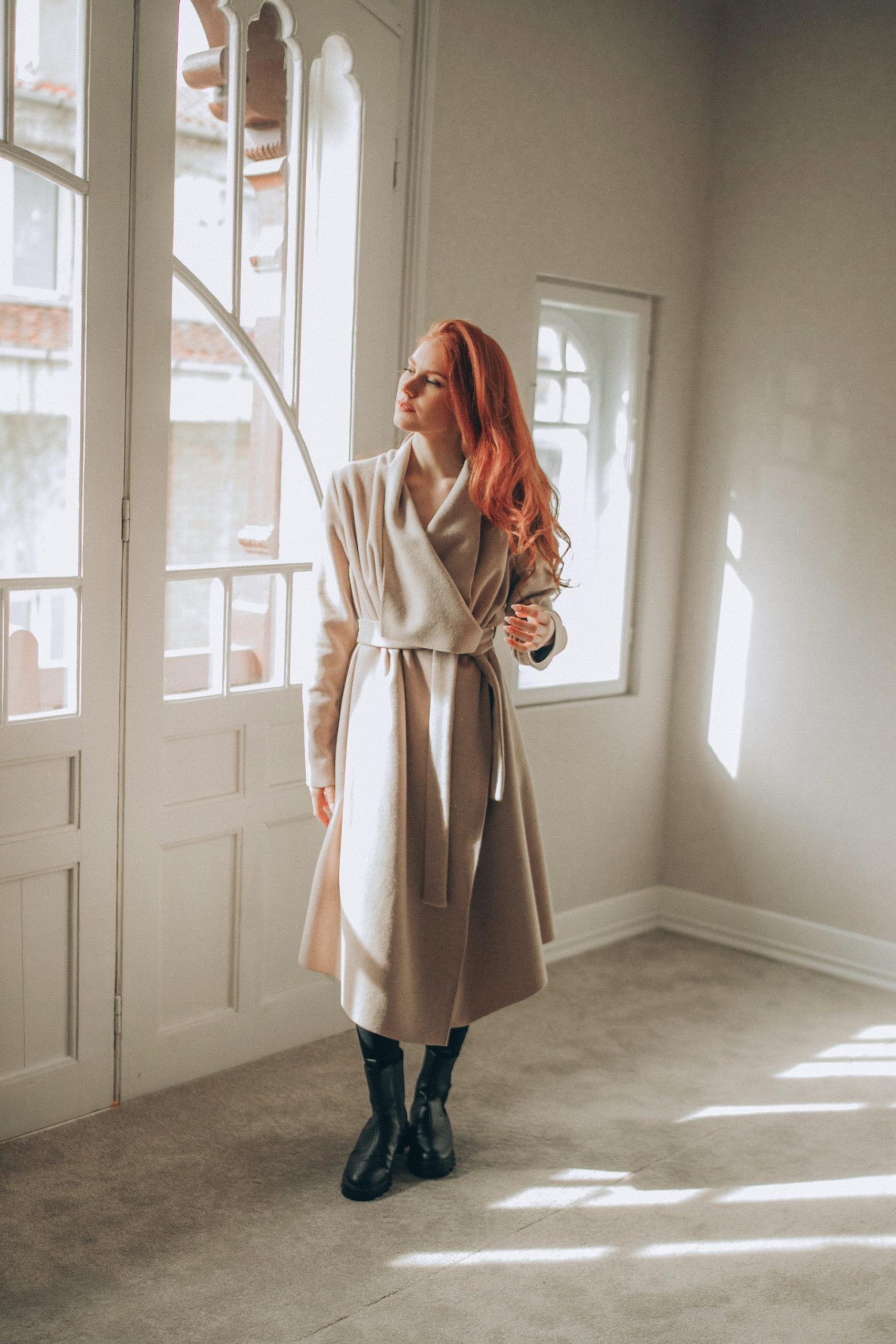 Experience the perfect blend of style and comfort with this powder beige wool cardigan coat, thoughtfully designed for women seeking warmth and elegance. This wool coat features a flowing asymmetrical wrap and a matching belt, making it an essential winter layer that complements both casual and dressy looks. This piece effortlessly elevates your wardrobe with its timeless charm.