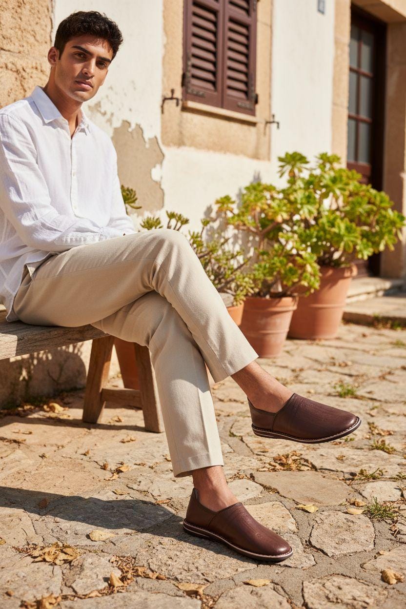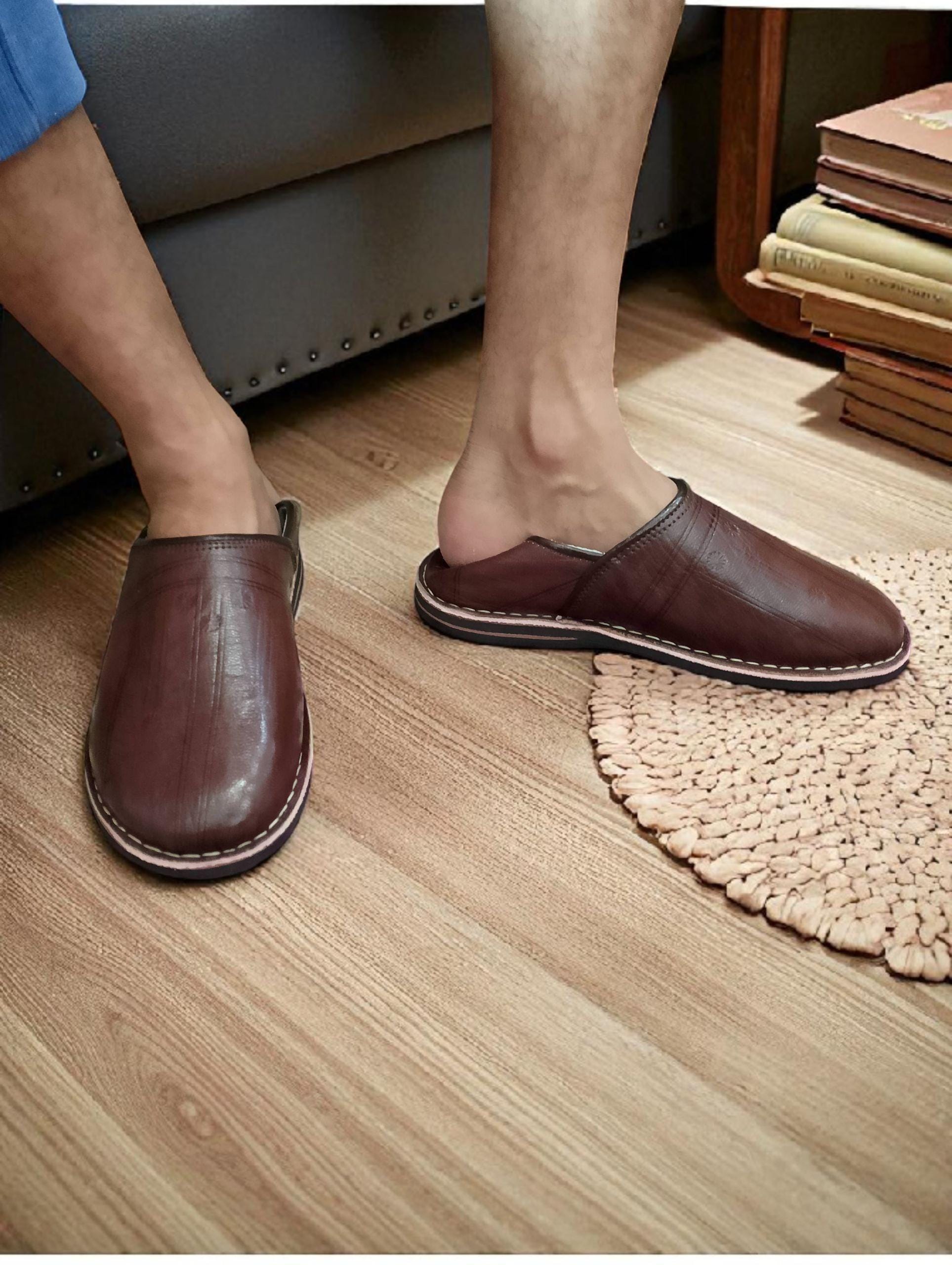 Experience the elegance and comfort of handmade leather slippers with foldable heels, crafted entirely in the purest Moroccan Berber tradition.