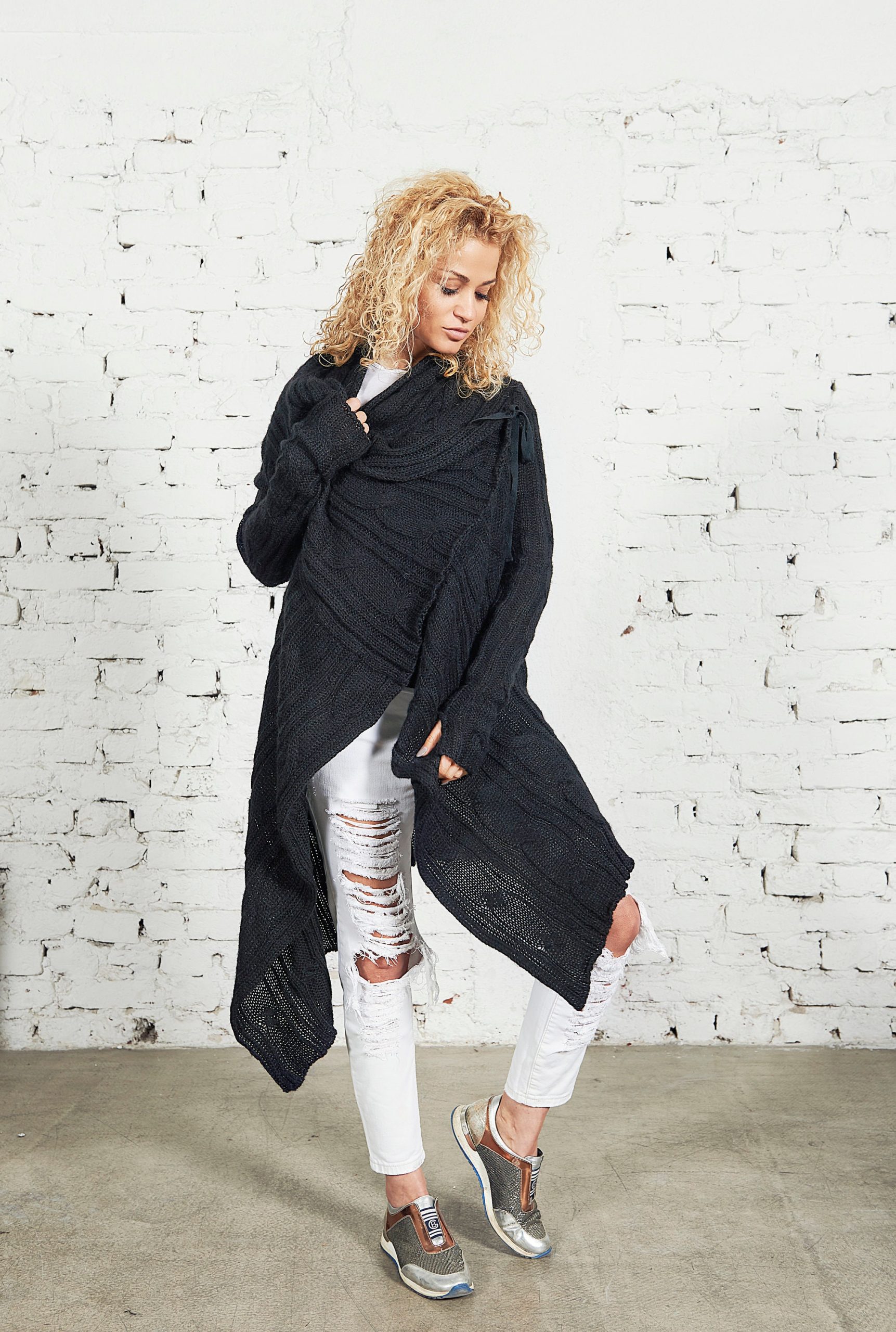 This asymmetrical knit cardigan is a piece carefully prepared from the bottom of our hearts. It is available in three colors and its high scarf collar in combination with the ties allows you to casually fasten the front. The cardigan is the ultimate choice for everyday wear.